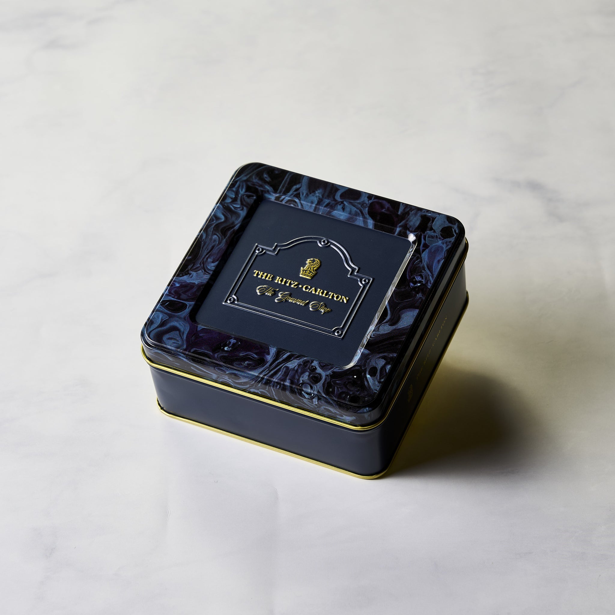 These jumbo cookies are filled with chocolate chips and nuts. Each cookie is individually wrapped and delivered in a tin box bearing the Ritz-Carlton, Osaka logo.