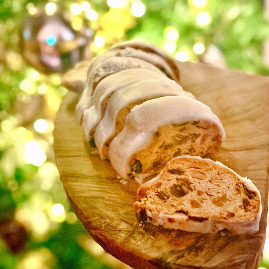 クリスマスに定番のドイツ伝統菓子。洋酒に漬けこんだドライフルーツとローストしたナッツを混ぜ込み、焼き上げました。日に日に変化していく味をお楽しみいただくために、少しずつスライスしてお召し上がりいただくのがおすすめです。